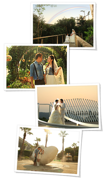 彩虹瀑布 完美幸福的愛情就像彩虹,滿載不同色彩,豐富一對愛侶的生命。馬灣公園的彩虹瀑布,在陽光普照的日子,彩虹便會呈現,見證您們倆的愛情和愛的終生承諾。